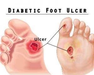 For foot ulceration include a previous history of foot ulceration or amputation, visual impairment, diabetic nephropathy, poor glycemic control, and cigarette smoking. Some studies have shown that foot ulceration is more common in men with diabetes than in women.